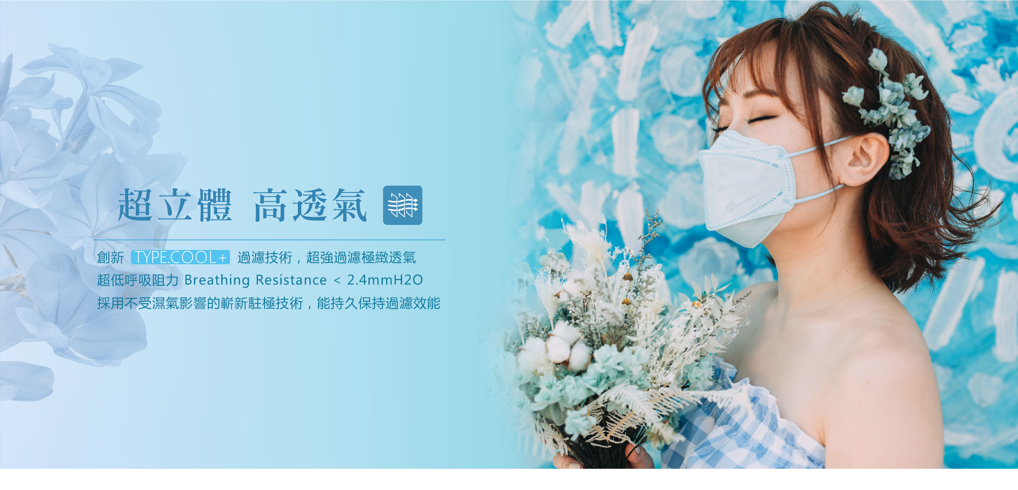 • Innovative TYPECOOL+ filtration technology with ultra-high breathability and effective for 24 hours