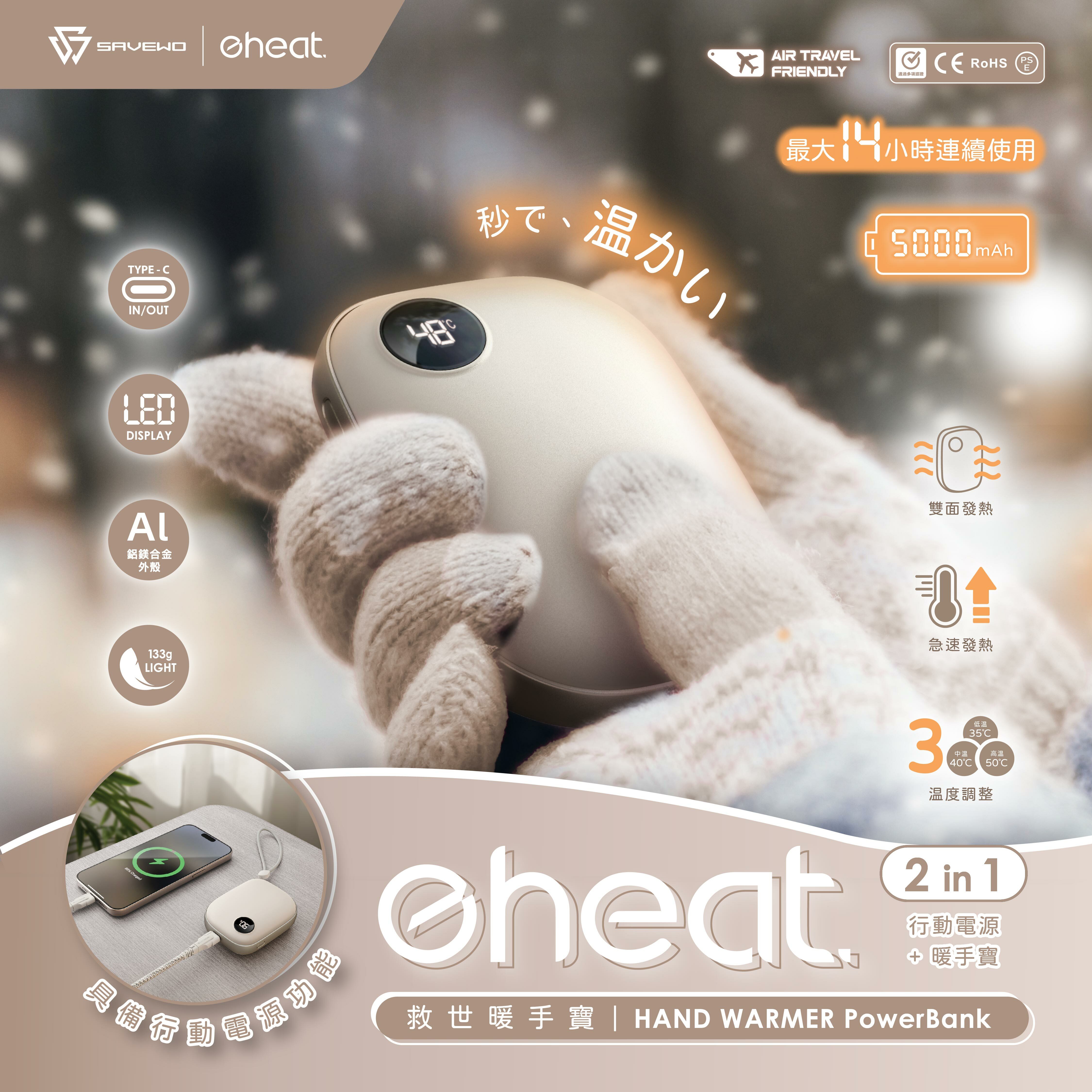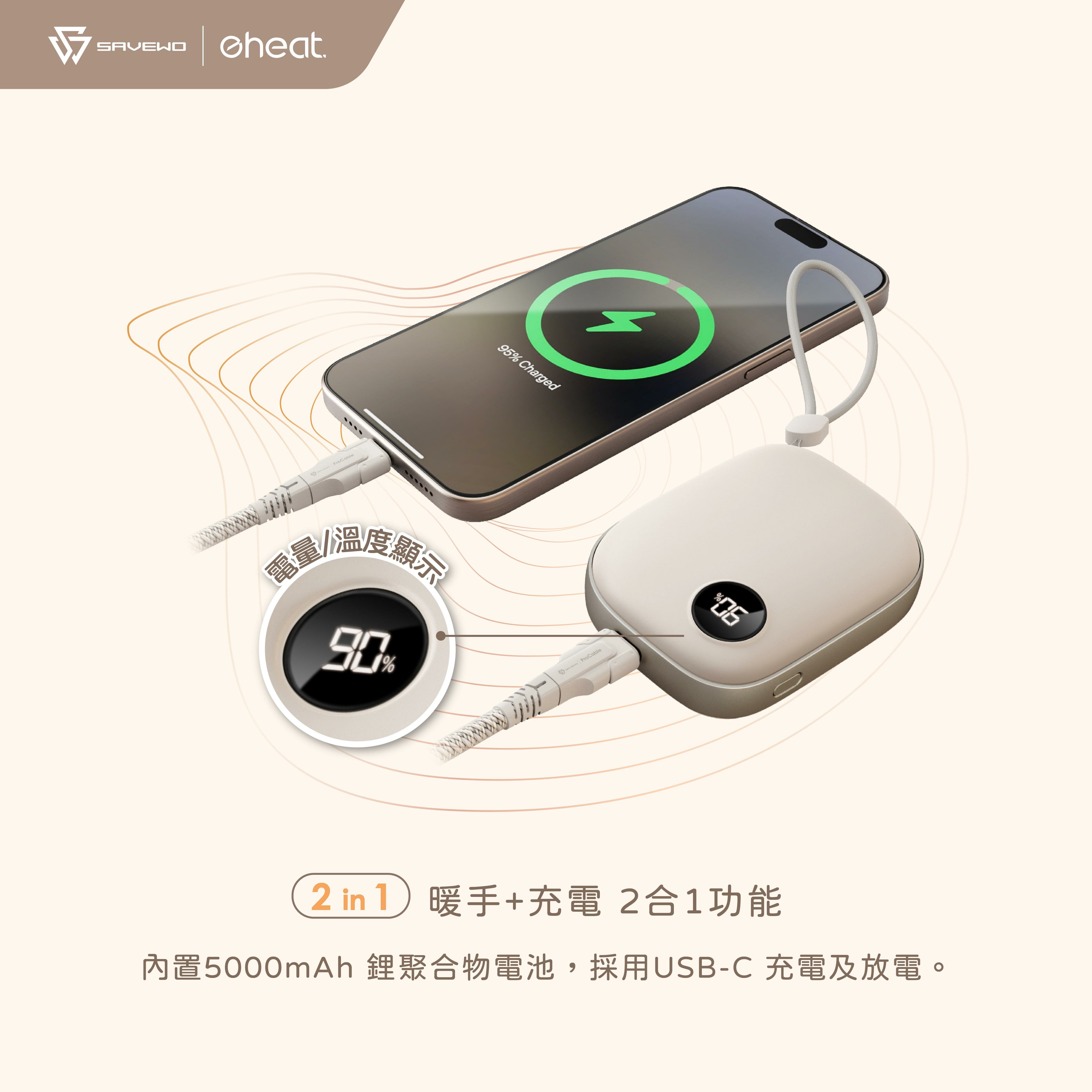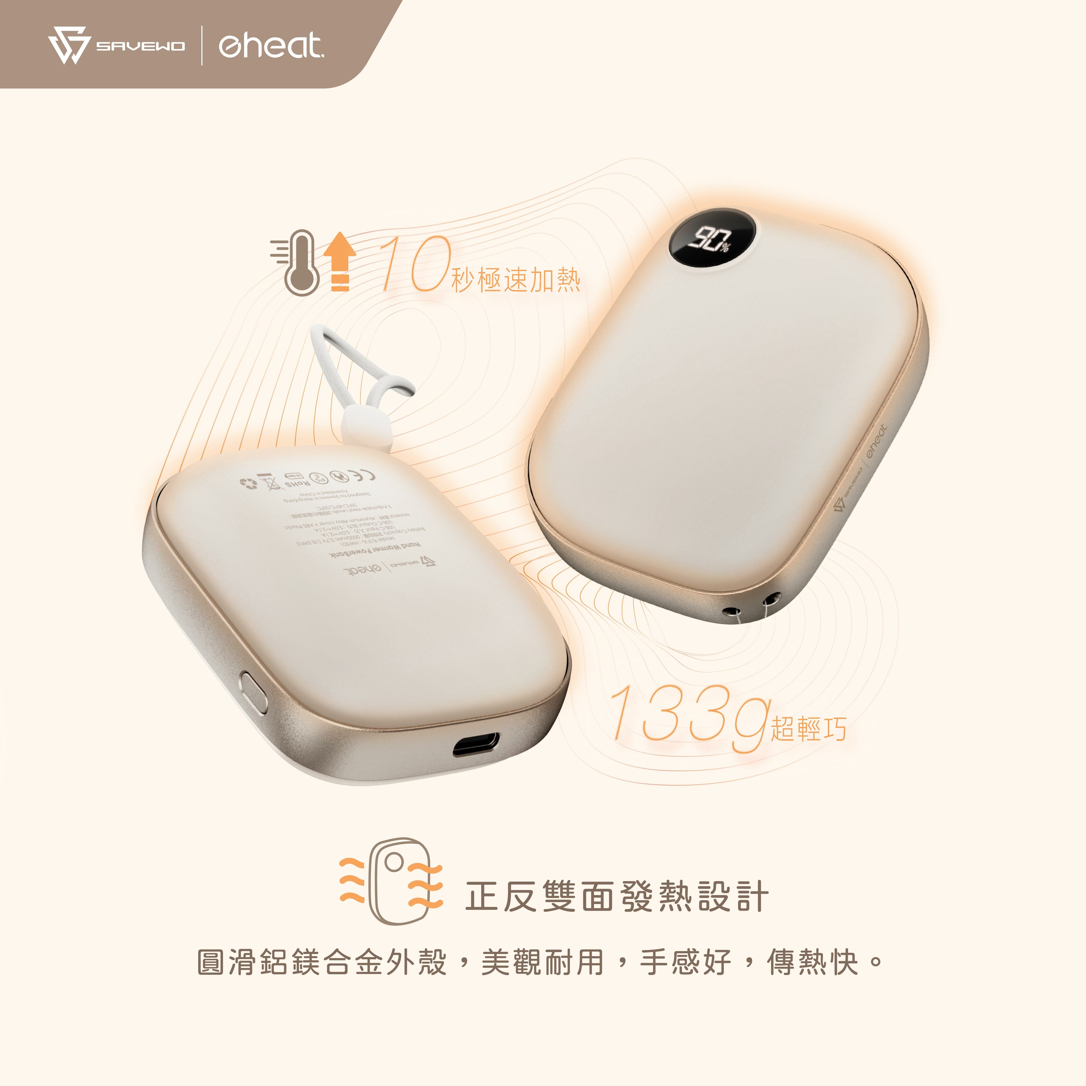 在這個冬季,SAVEWO eHeat 暖手寶 HW501是能帶來溫暖的必備小夥伴。提供三段式恆溫設計,可持續發熱達14小時,配備正反雙面加熱技術和鋁鎂合金外殼,確保迅速且舒適的加熱。內置5000mAh電池可兼作移動電源,重量僅133g,方便攜帶,使每個寒冷的日子都變得溫暖而美好。