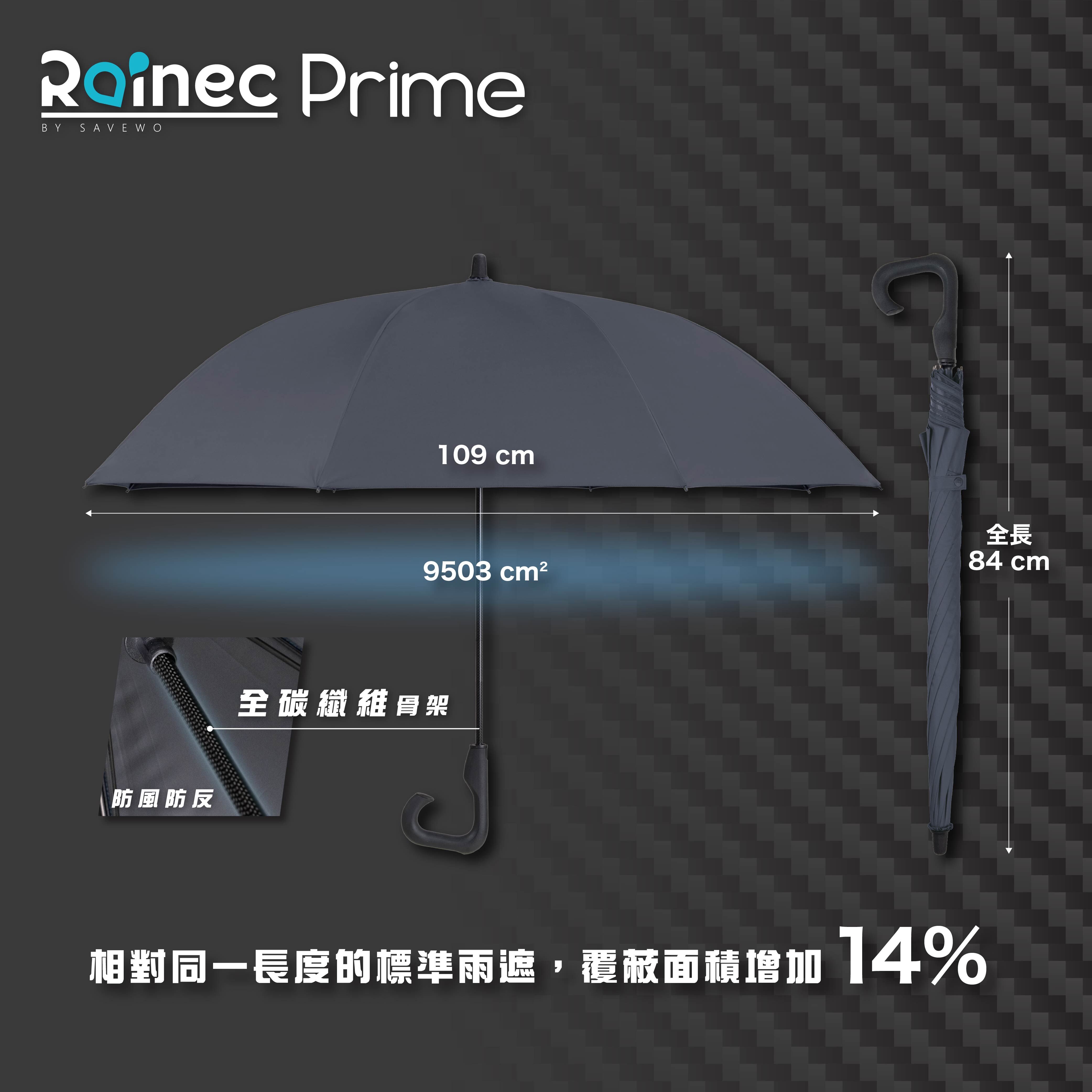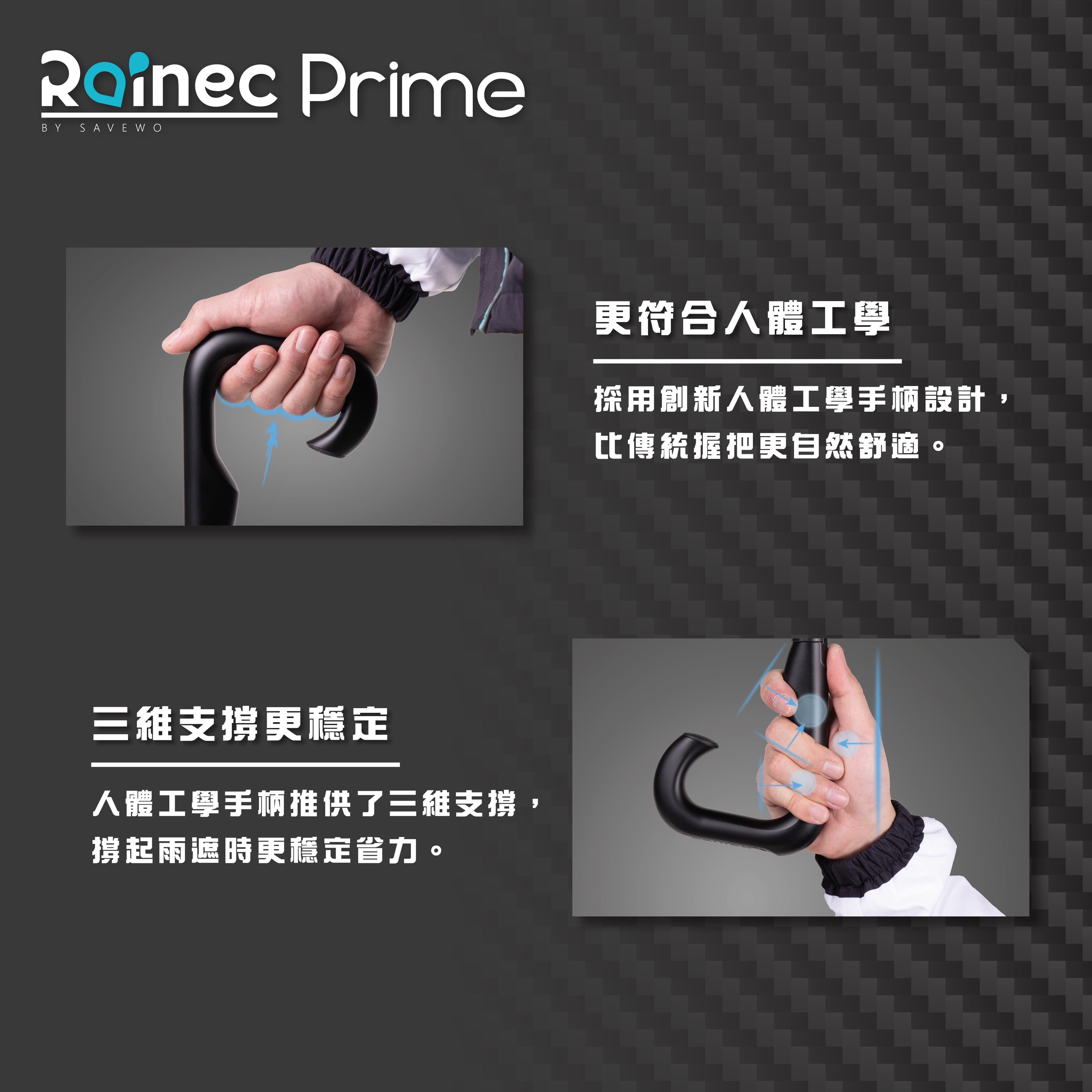 萬眾期待,繼承Rainec Ultra!擁有U型手柄既碳纖維雨傘 Rainec Prime終於推出!🎉全碳纖維骨架設計,輕量而堅固,單手輕鬆操作,一鍵自動開遮,開合極其順暢,全遮只有365g,展開直徑達109cm,收合長度84cm,更有防風防反設計。全新專利手柄設計提供舒適握感,配合Rainec Tex技術,無懼日曬!風吹!雨打!,為你提供超Prime既保護同體驗,成為你最佳晴雨夥伴!