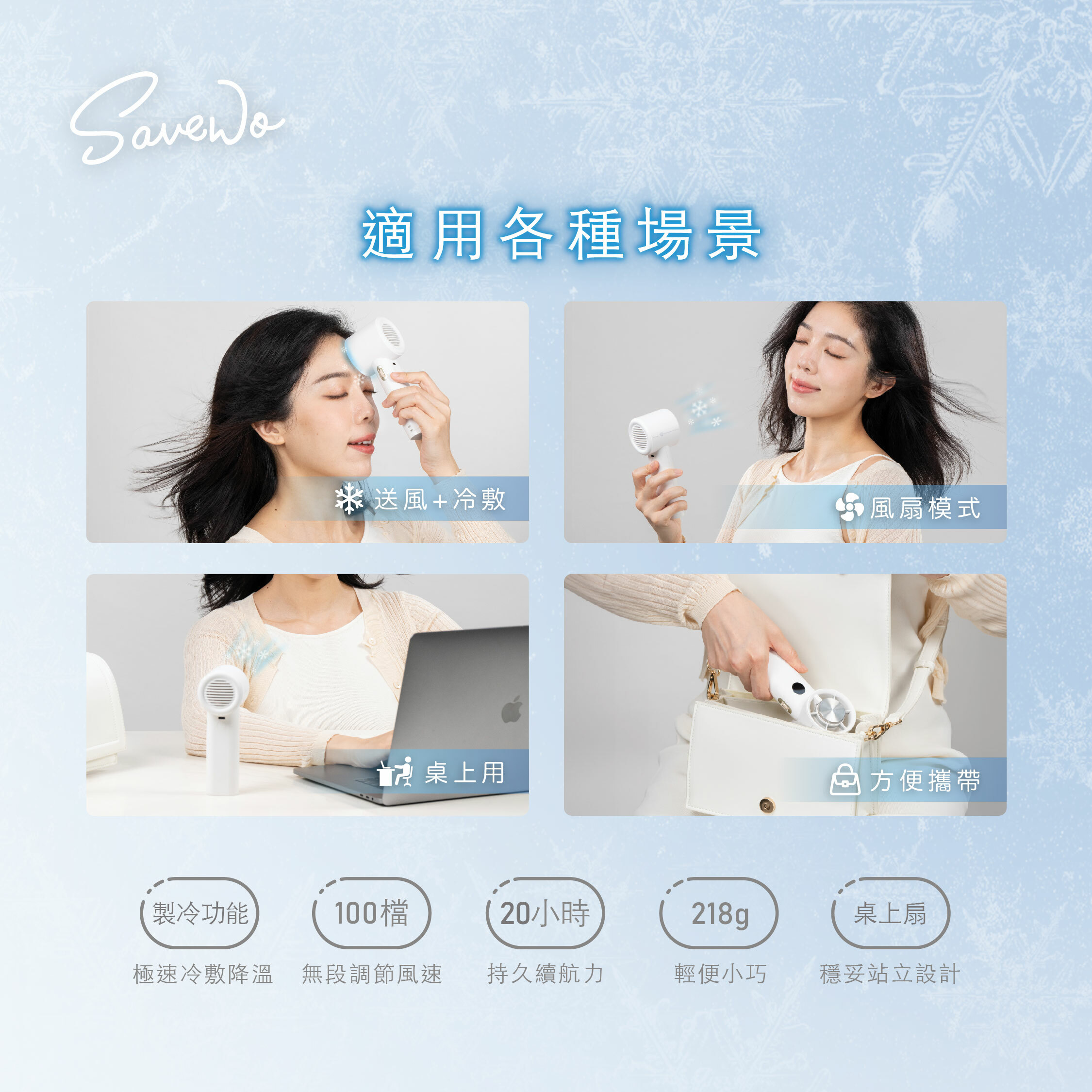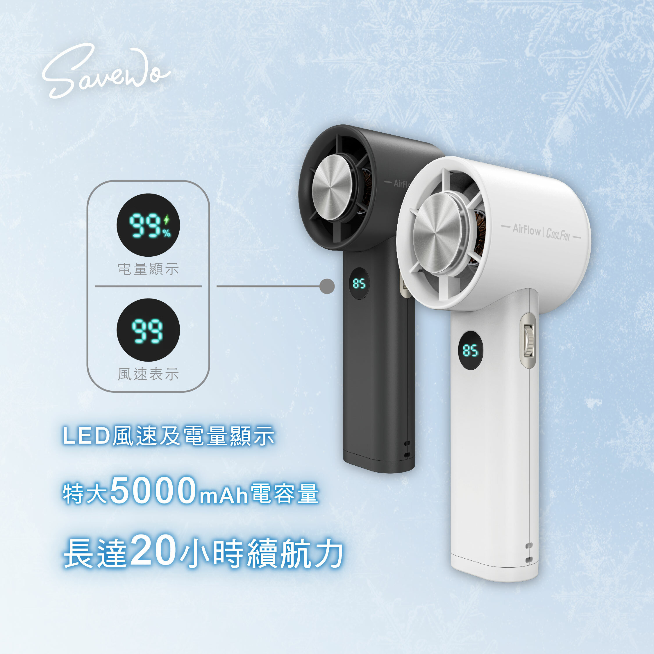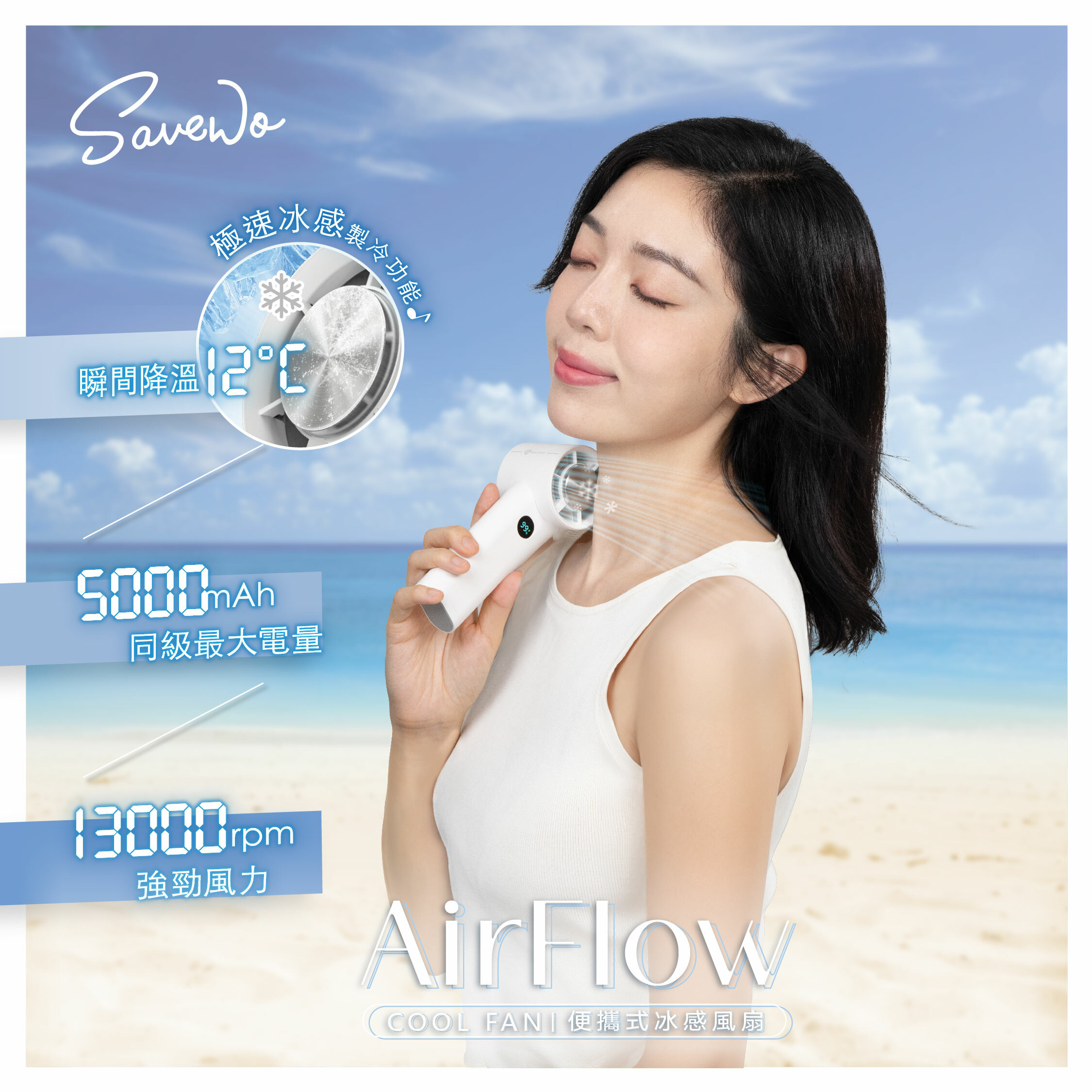 作為一款便攜式冰感風扇,SAVEWO AirFlow Cool Fan集合咗強大製冷效果❄、長續航力以及安全可靠等特點,係夏日消暑嘅理想選擇。無論喺屋企、辦公室定係外出,都可以為你帶嚟舒適凉爽嘅體驗。