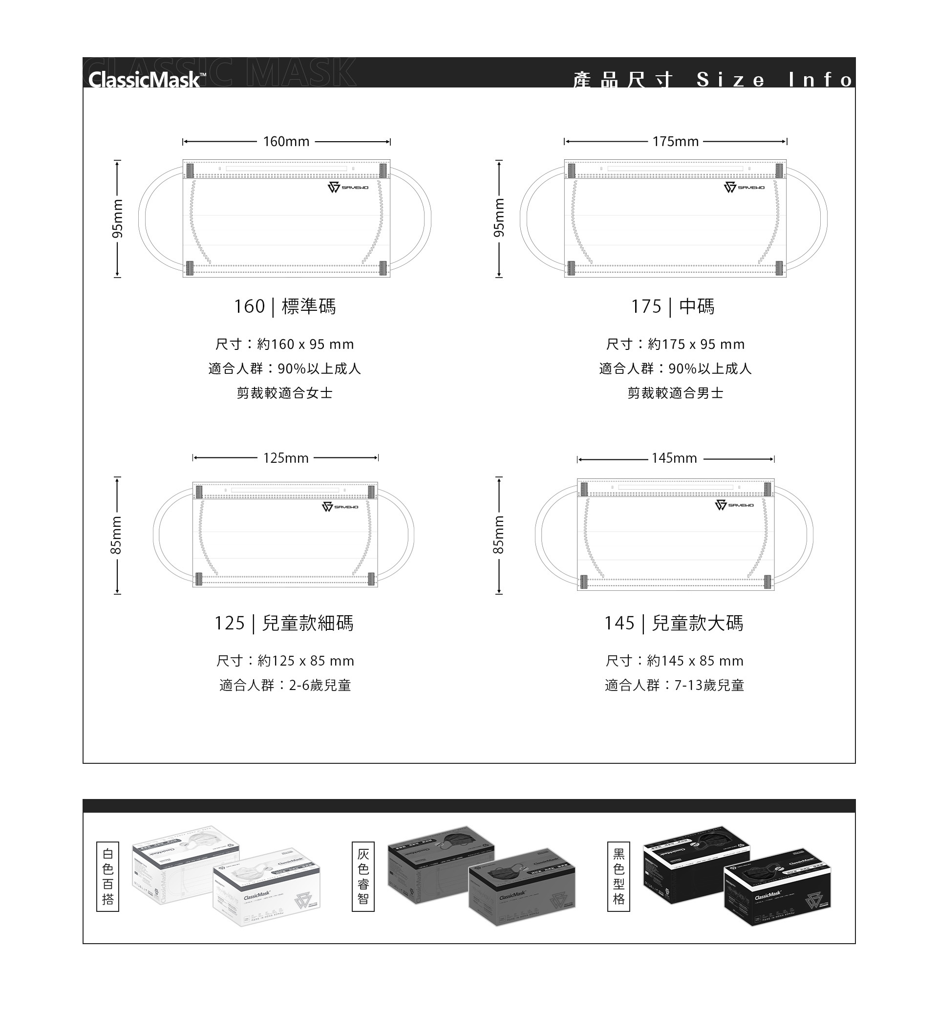 ClassMask組合價:$125/三盒(可以與其他ClassicMask系列混款,請輸入3盒以享有優惠)