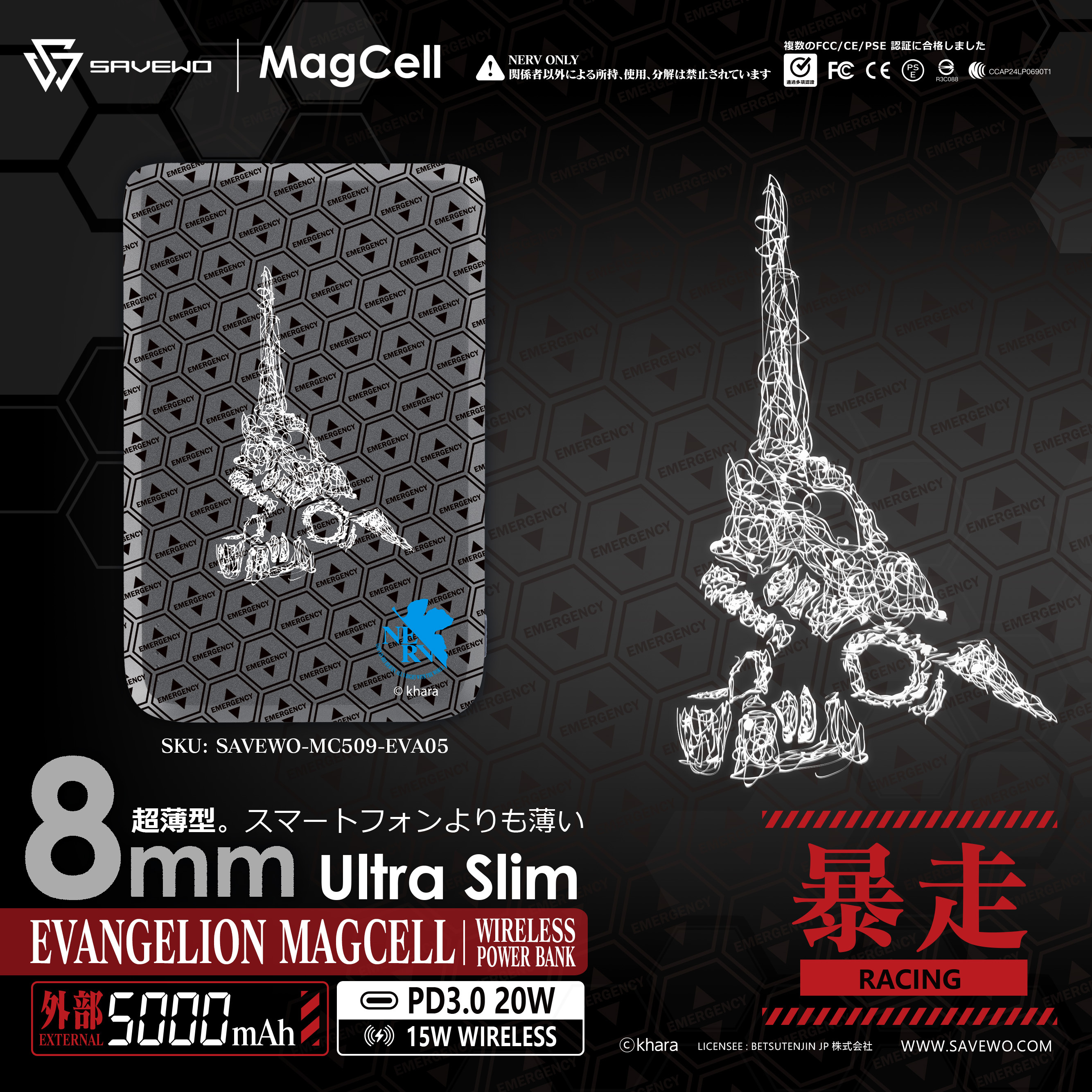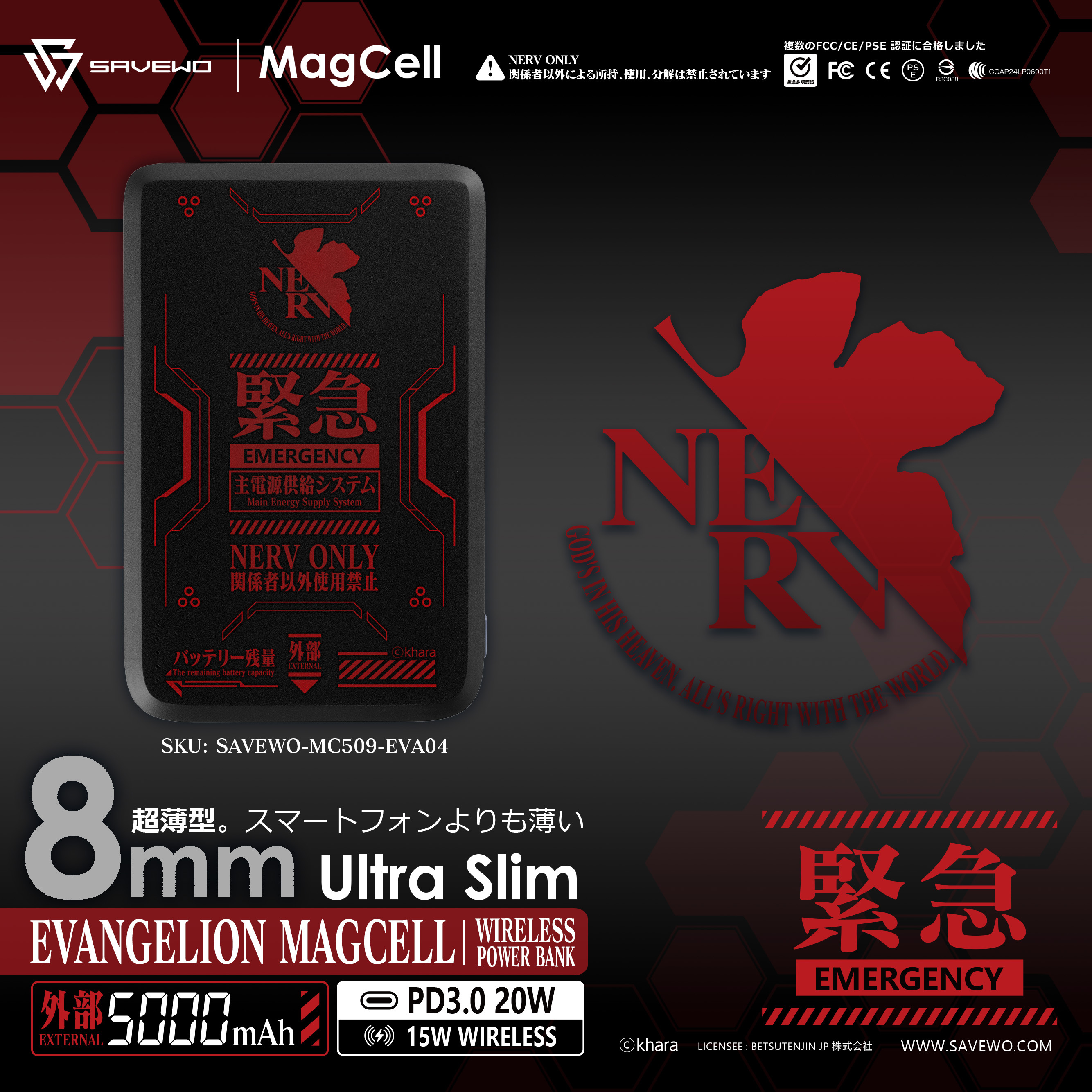 SAVEWO X EVANGELION MagCell MC509 5000mAh Wireless PowerBank 超薄磁吸式無線行動電源