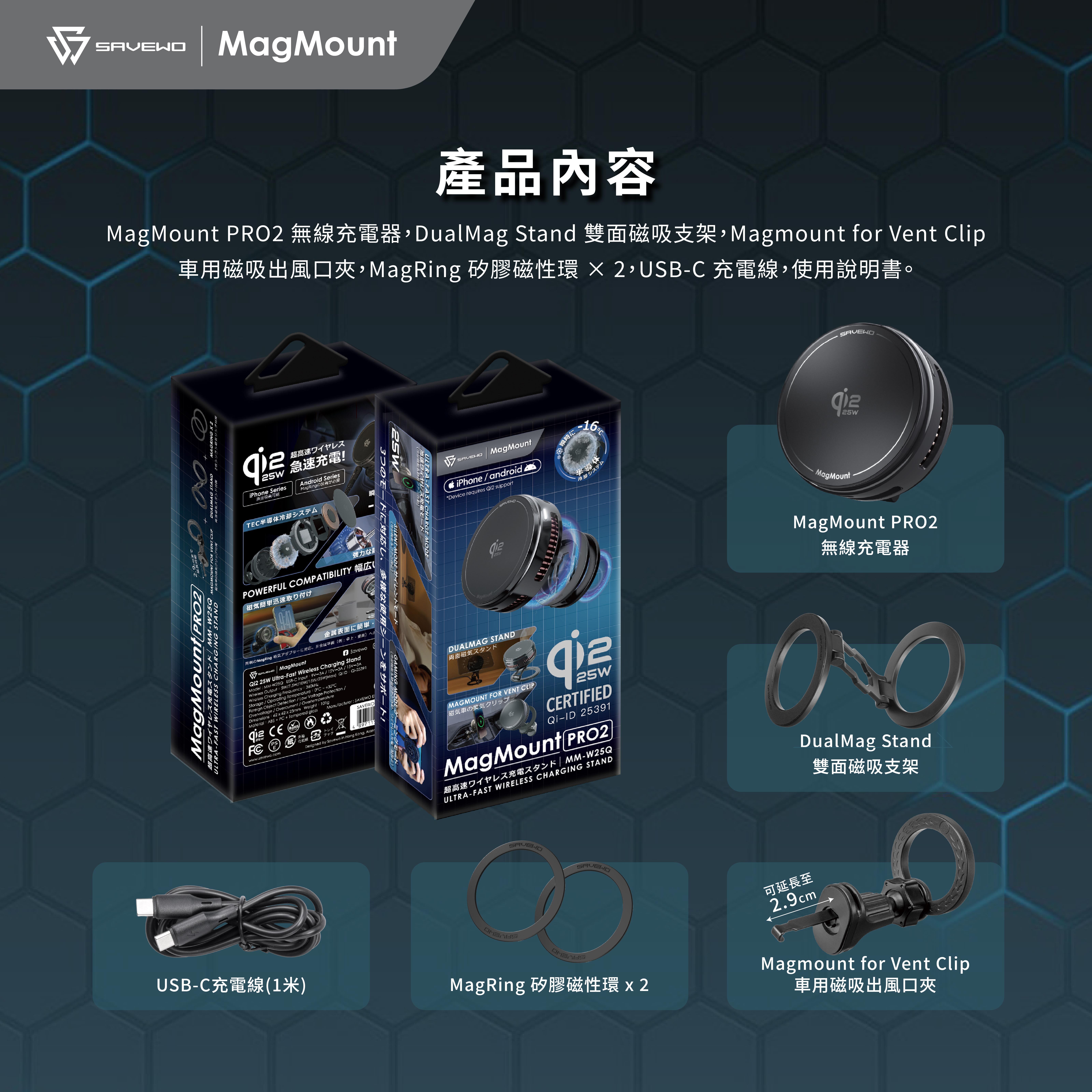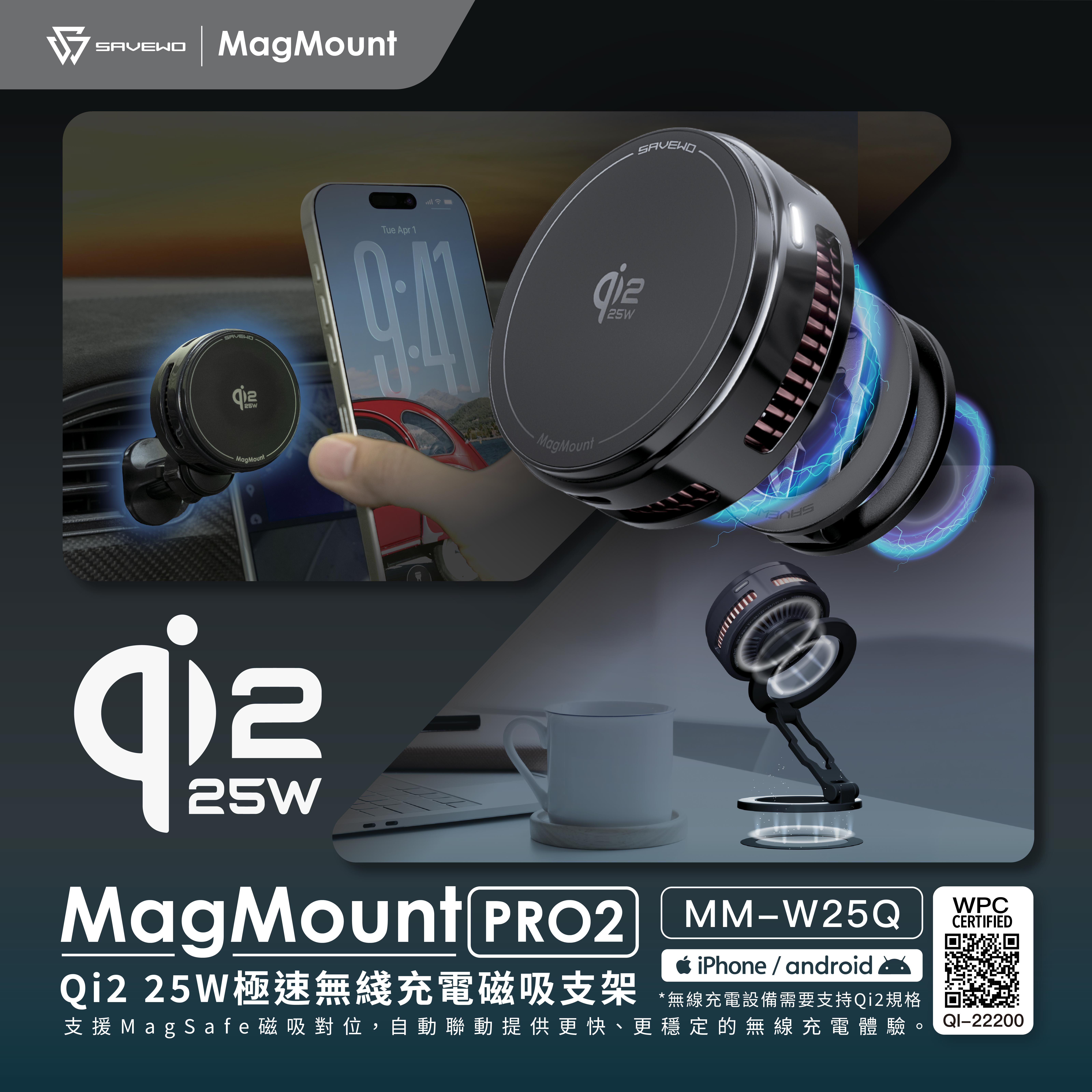 Savewo [MagMount PRO2] Qi2.2 磁吸無線充電支架