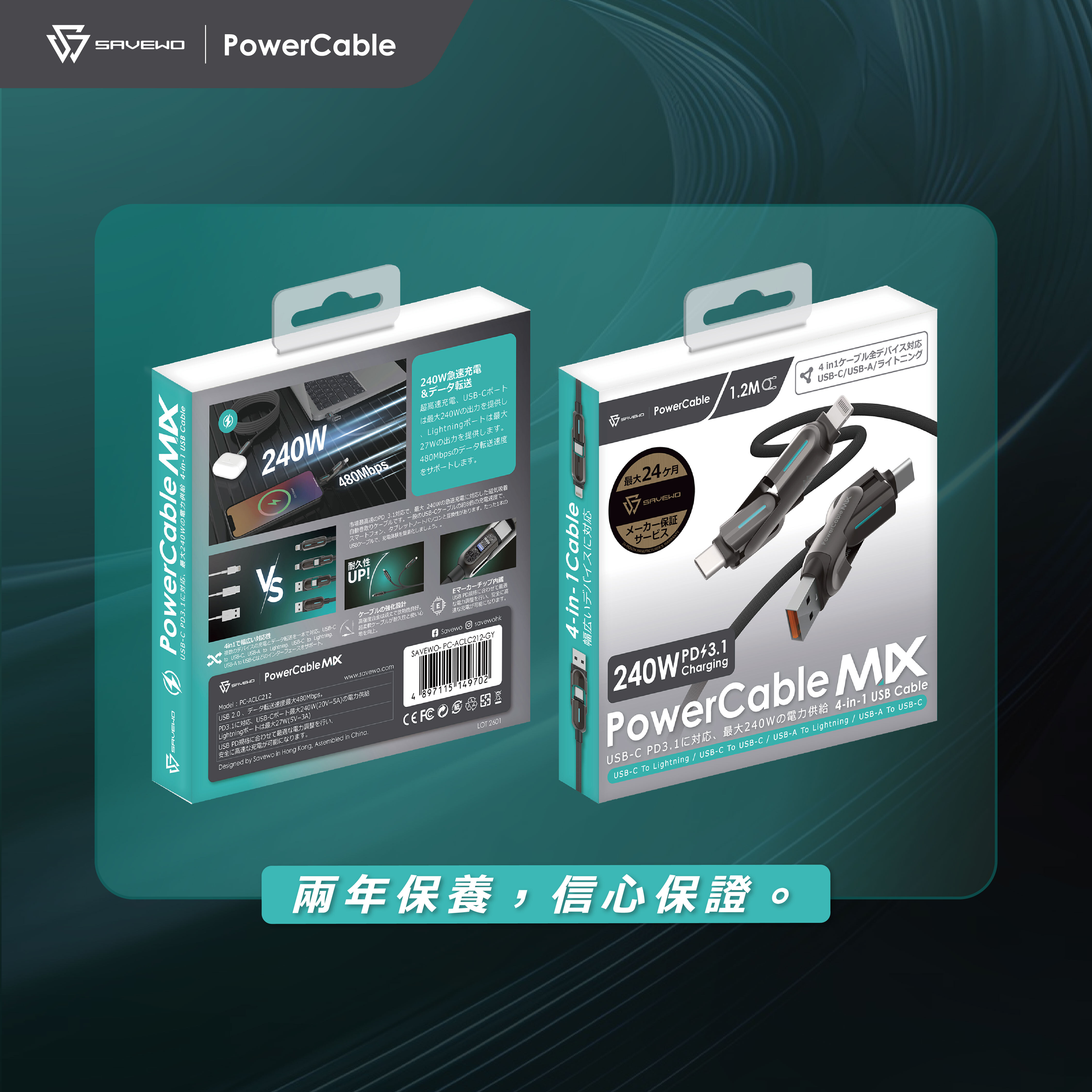 🔌 4 in 1 一線多用,支援最新 PD 3.1⚡ 最高 240W 極速充電!功率傳輸更快、更穩定💪