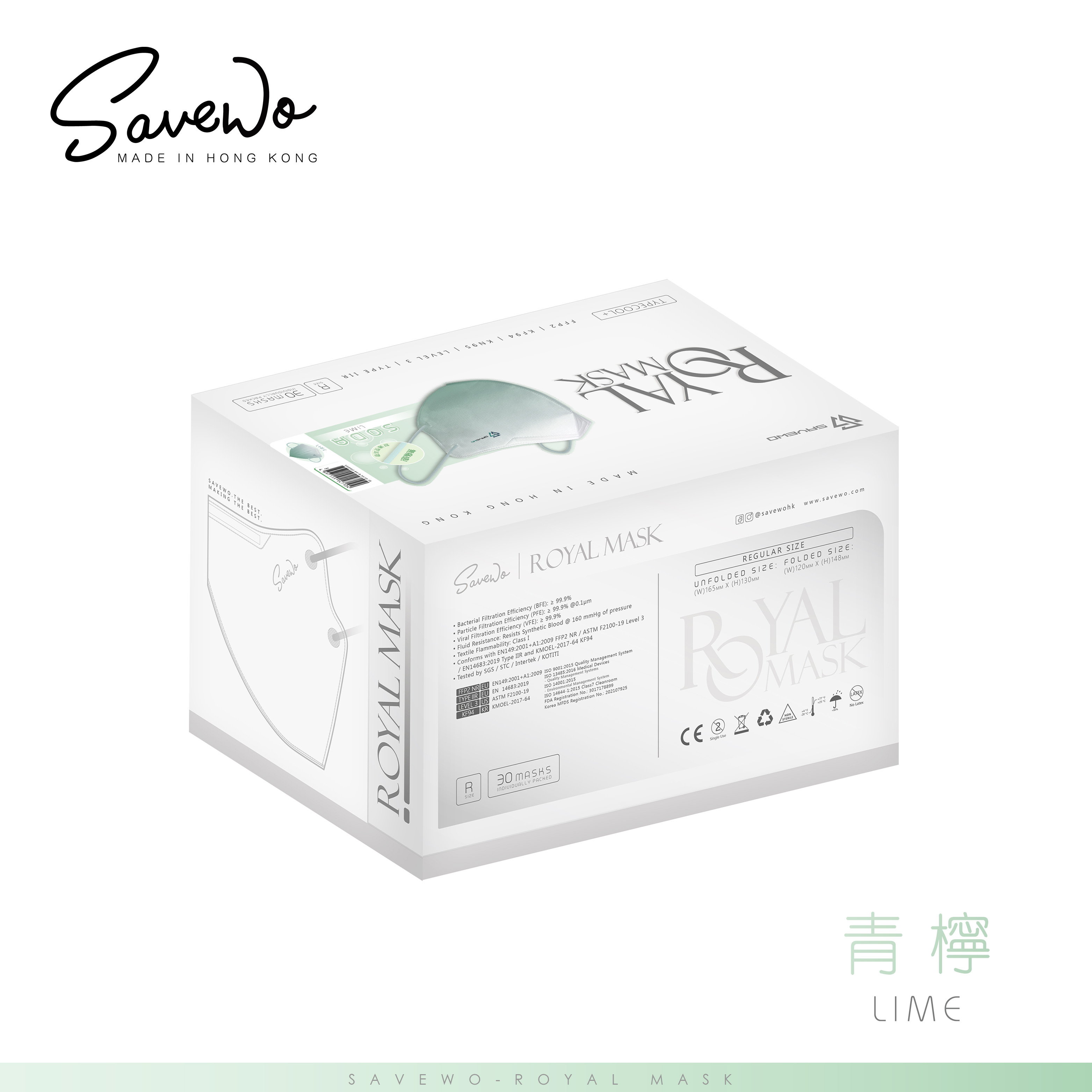 集救世科研與時尚極致於一身,極修臉對摺型口罩 Royal Mask,能高度適合95%人士臉形,簡約而細緻V形設計讓你配戴極為方便亦易於收納。秉承救世專利過濾技術 TYPECOOL+,Royal Mask 保留「高透氣」「強過濾」「防敏感」特質,除有效防禦99.9%飛沫、花粉、懸浮物質、細菌及病毒,更配合獨有剪裁讓其緊貼面部完美防止漏氣,符合人體工學的立體設計,內部空間比一般口罩多出30%,呼吸更暢順,配戴更舒適無阻!