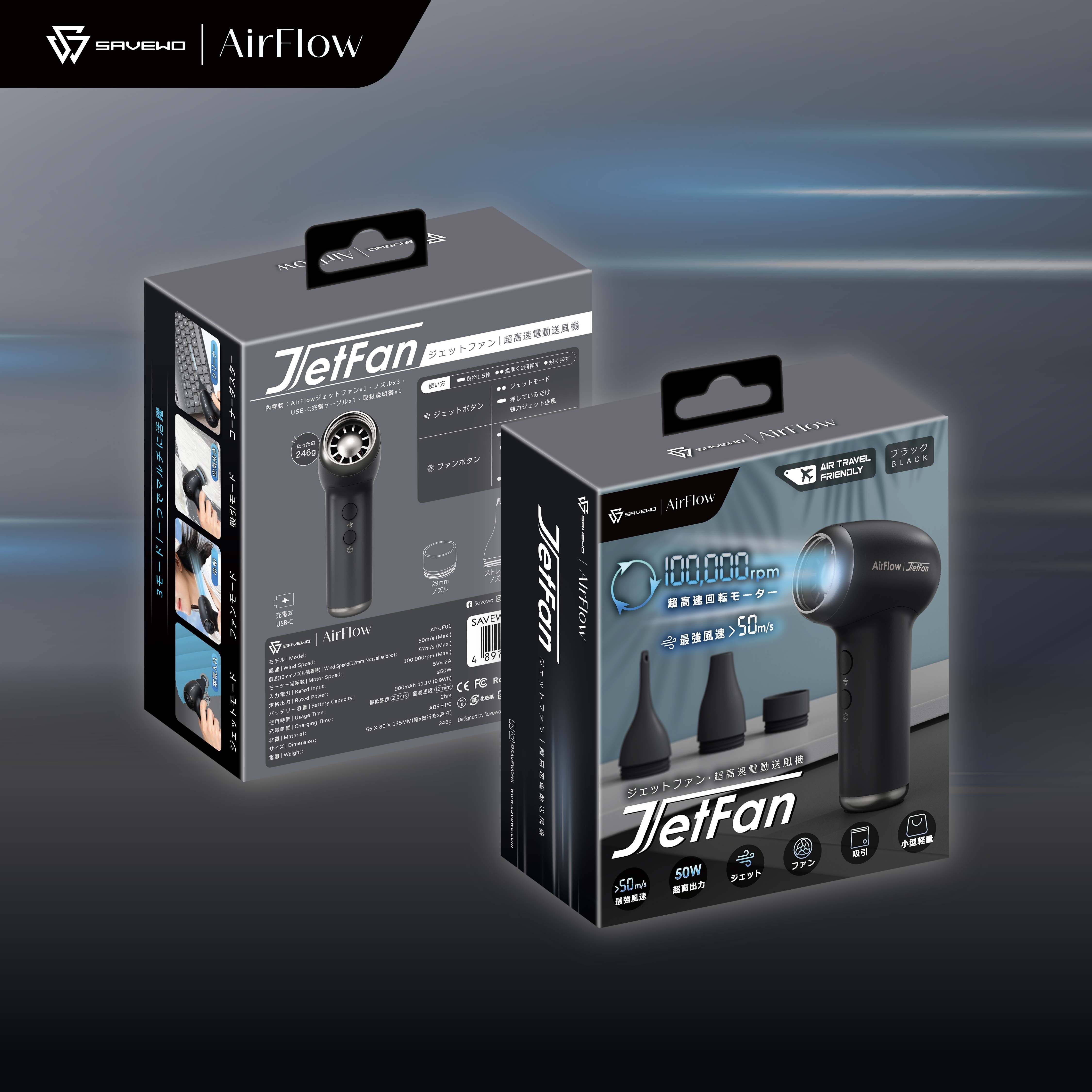 SAVEWO AirFlow Jet Fan 超高速多功能便攜噴射風扇