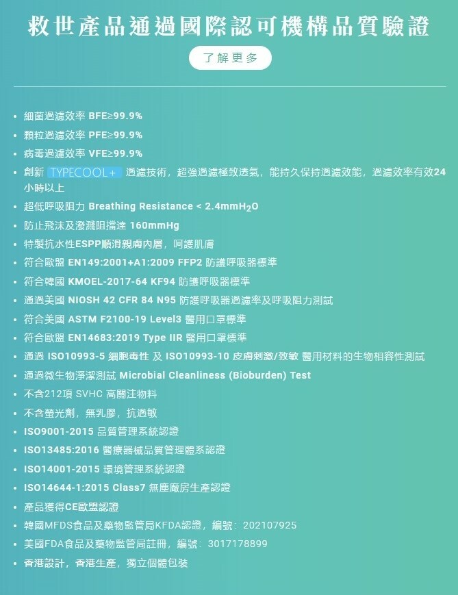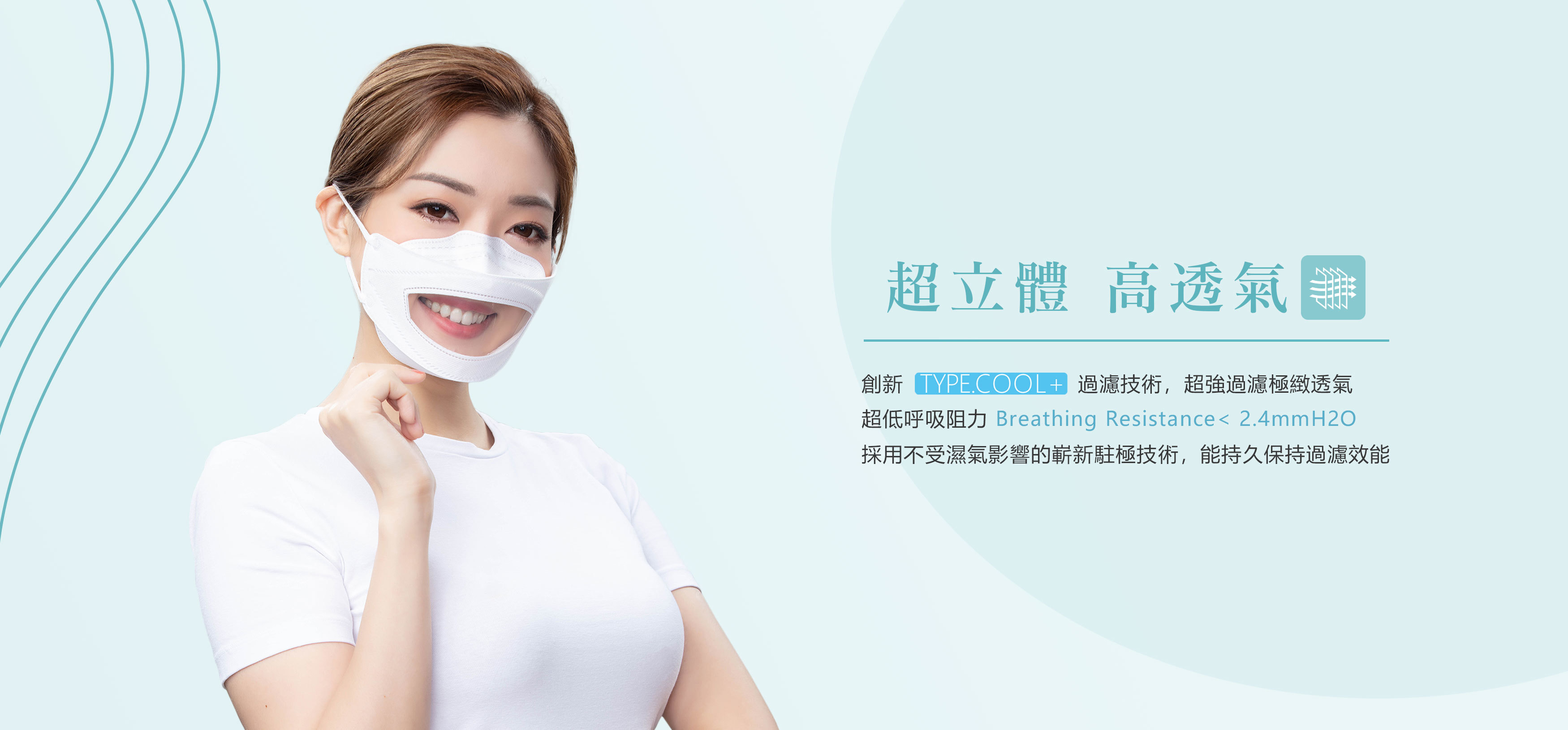 • 創新TypeCool+過濾技術,超強過濾極緻透氣