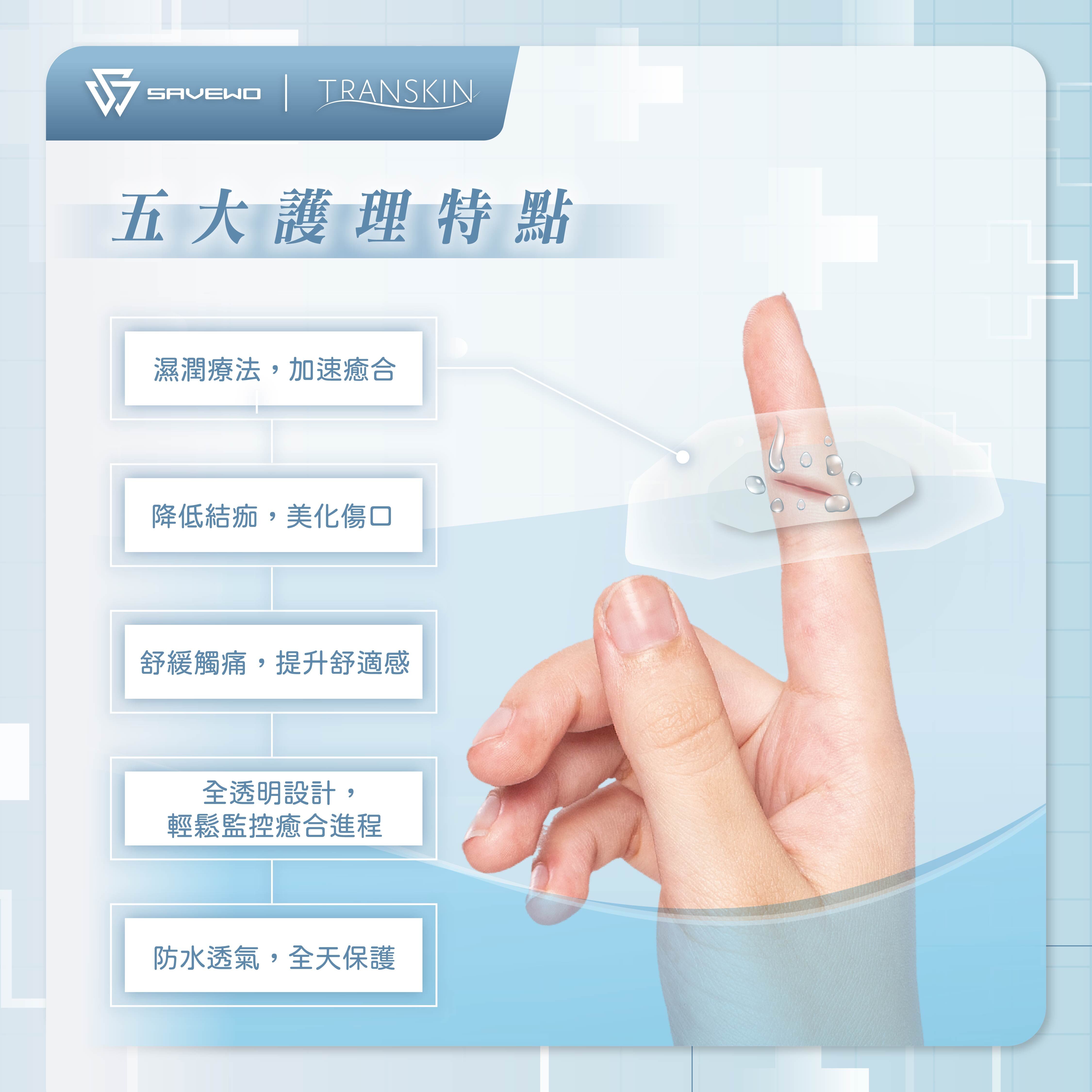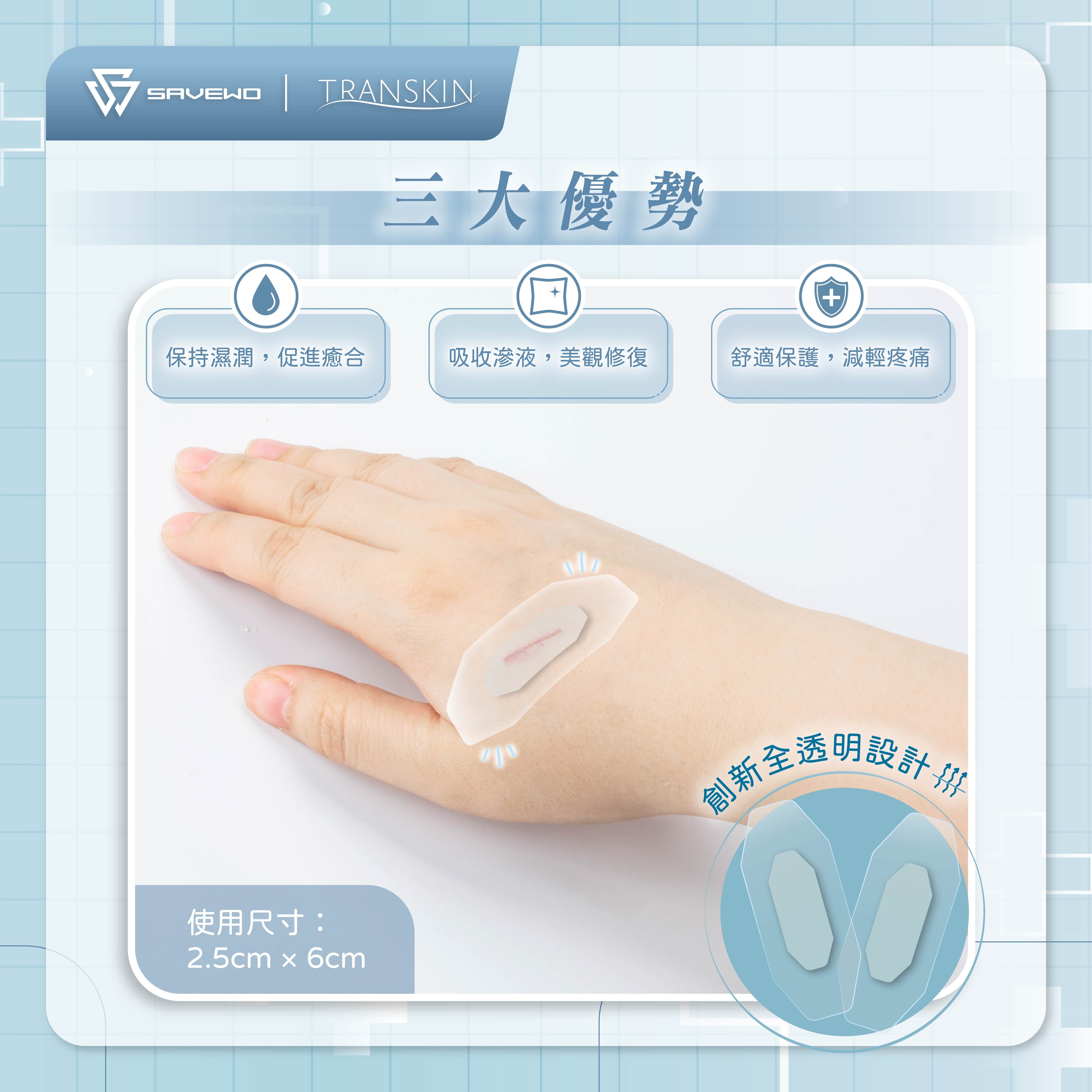選擇TranSkin人工皮防水透氣繃(水膠體),讓每一次傷口護理都更輕鬆、更有效!