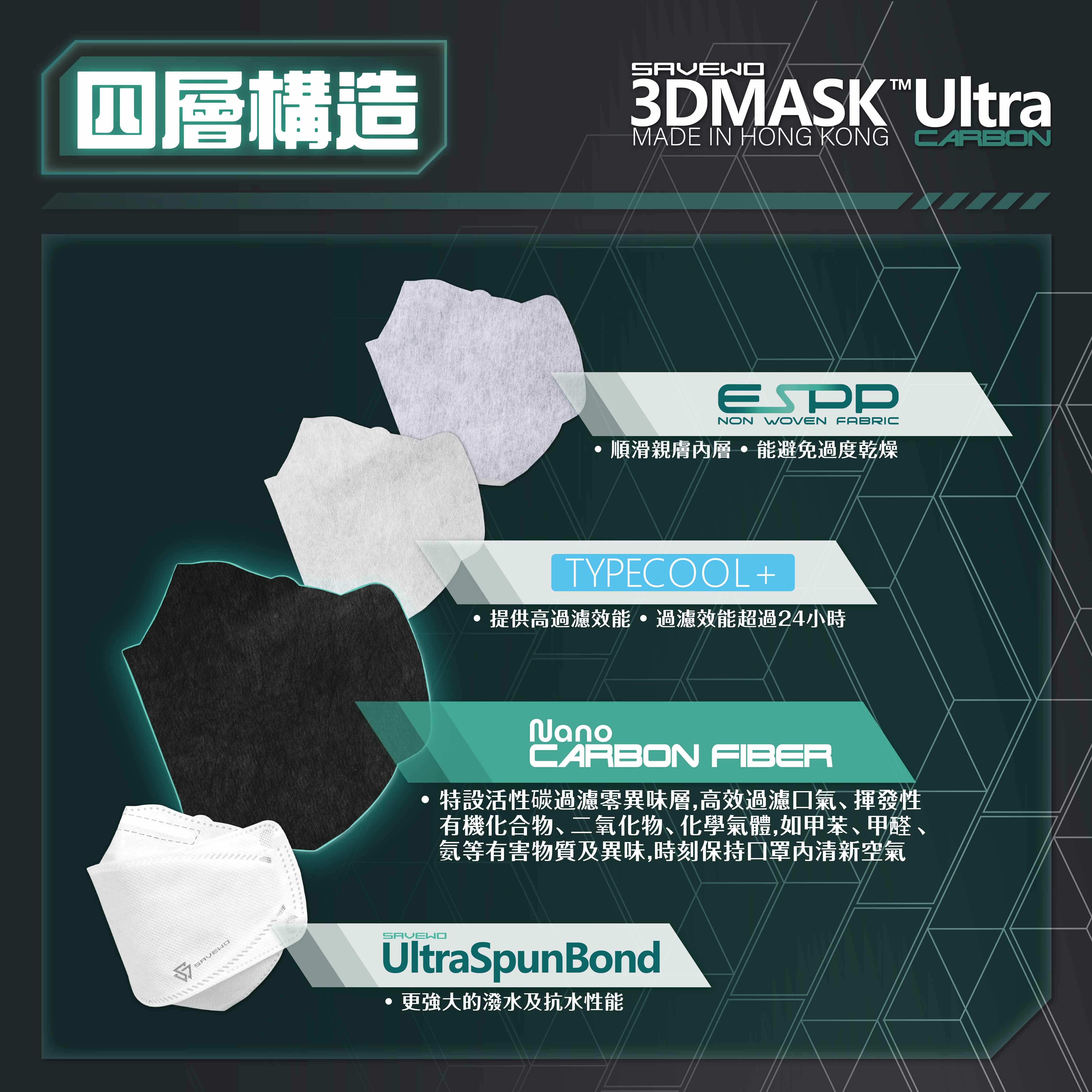 四層防護、特設活性碳過濾零異味層的3D Mask Ultra Carbon開始發售!