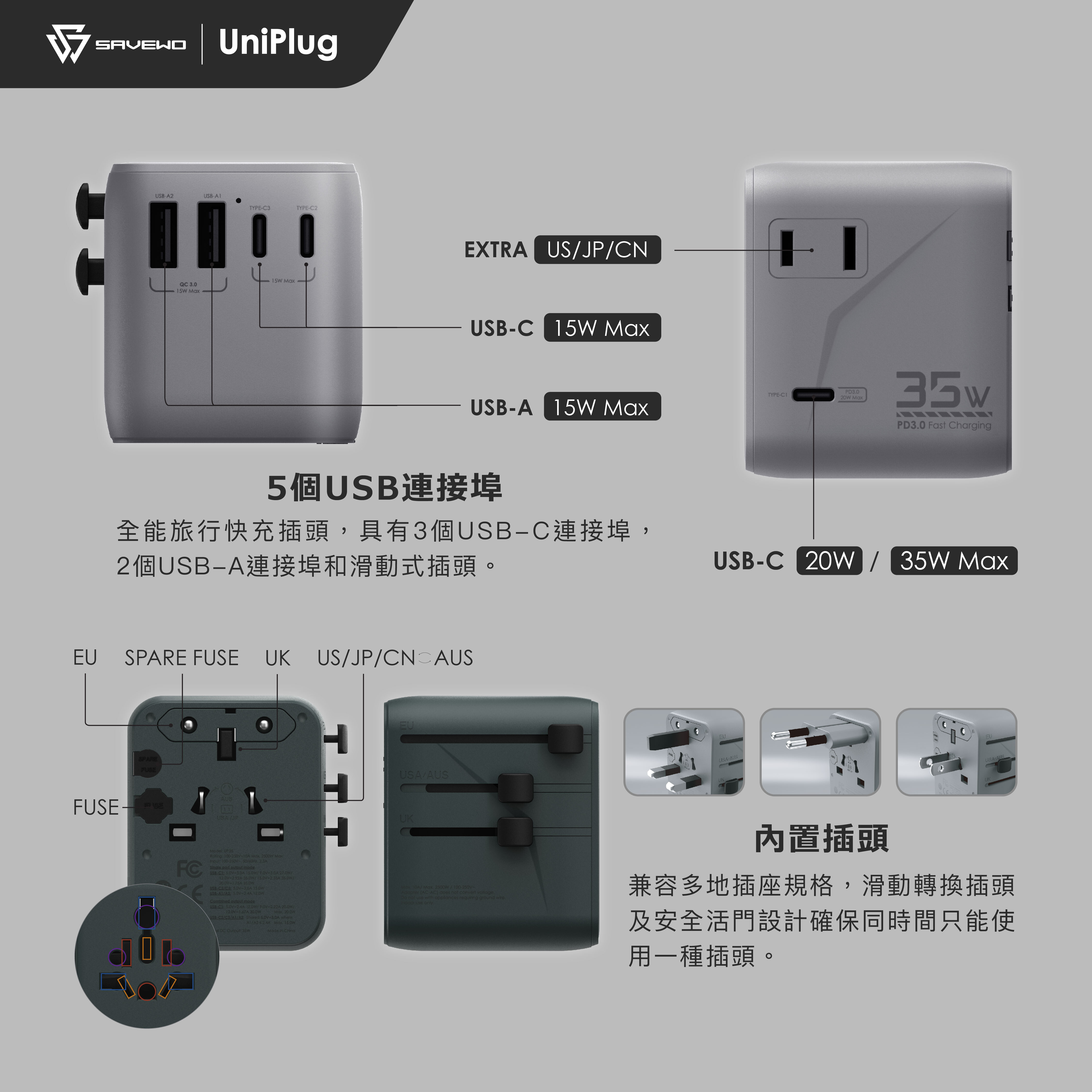 *因應香港法例,英規插腳已被封閉, 如在海外使用, 剪開封口即可, 請確保完全移走封口並沒有異物掉入阻礙推出插頭
