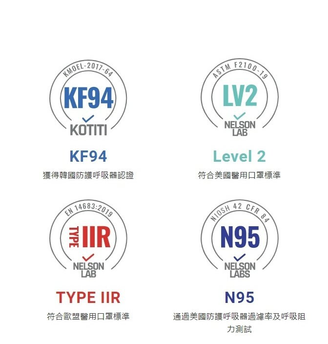 • 符合韓國KMOEL-2017-64 KF94 防護呼吸器標準